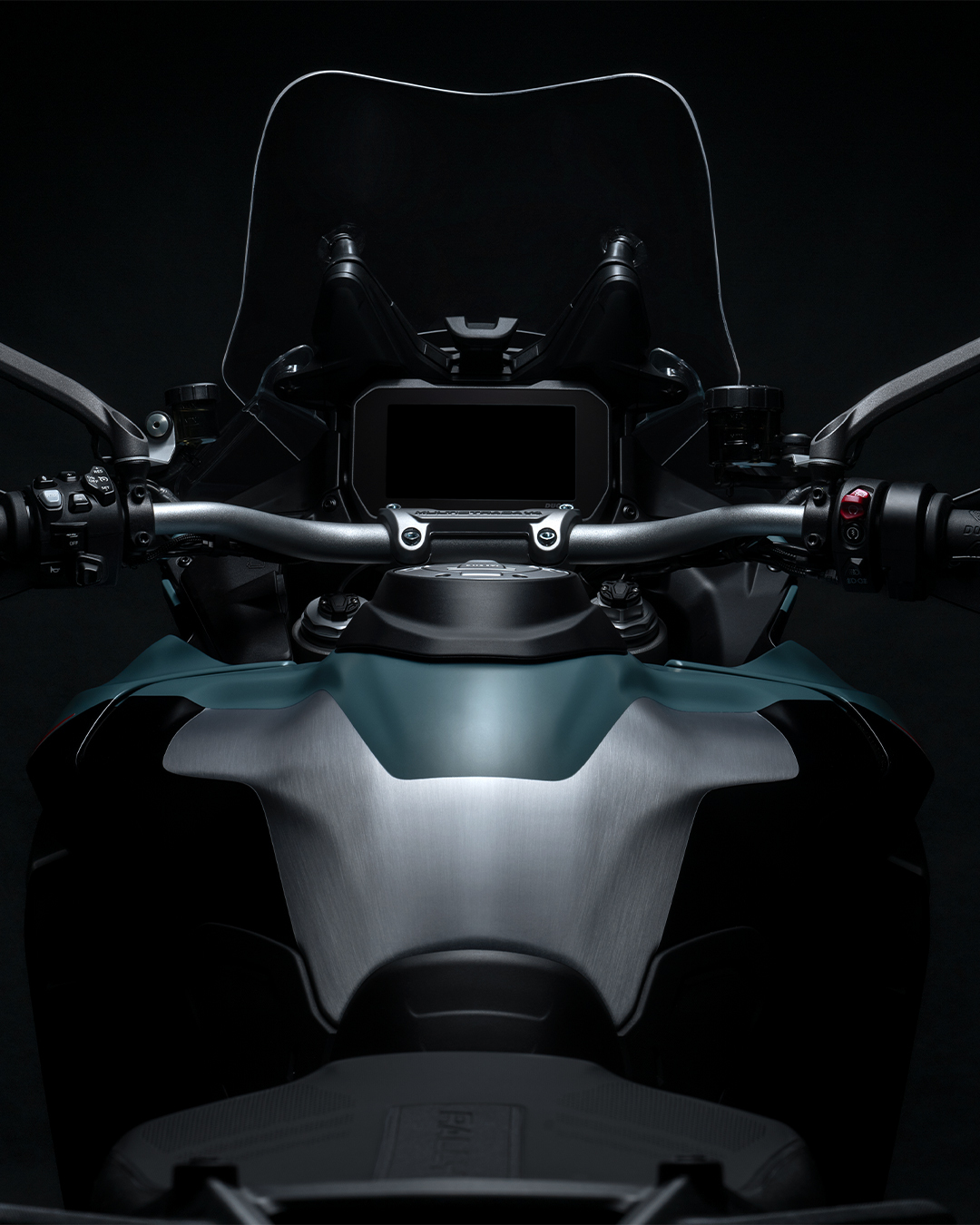 La Multistrada V4 Rally viene proposta in due livree, entrambe giocate sul contrasto fra le parti verniciate in Ducati Red e Jade Green. La nuova livrea Jade Green/Brushed Aluminium con il verde opaco che trova riscontro nell’alluminio a vista del serbatoio e ai cerchi con canale in colore oro che comunicano la vocazione da globetrotter della Multistrada V4 Rally.