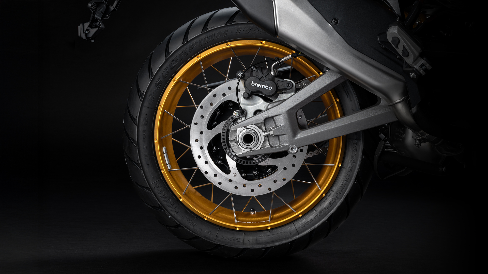 L’impianto anteriore di Multistrada V4 Rally è caratterizzato da pinze radiali monoblocco Brembo Stylema, pompe radiali con leve regolabili, doppio disco anteriore da 330 mm. Al posteriore è presente un nuovo impianto dalla maggior potenza, con disco singolo da 280 mm di diametro e spessore di 6 mm su cui lavora una pinza flottante Brembo.