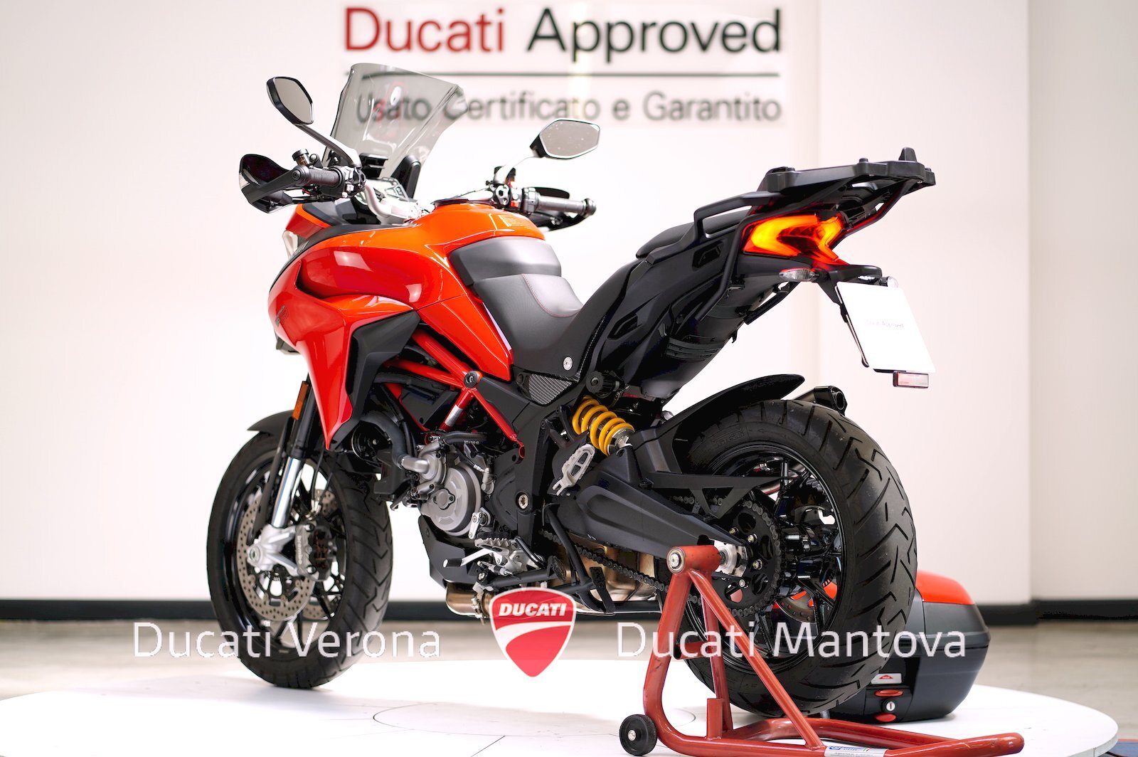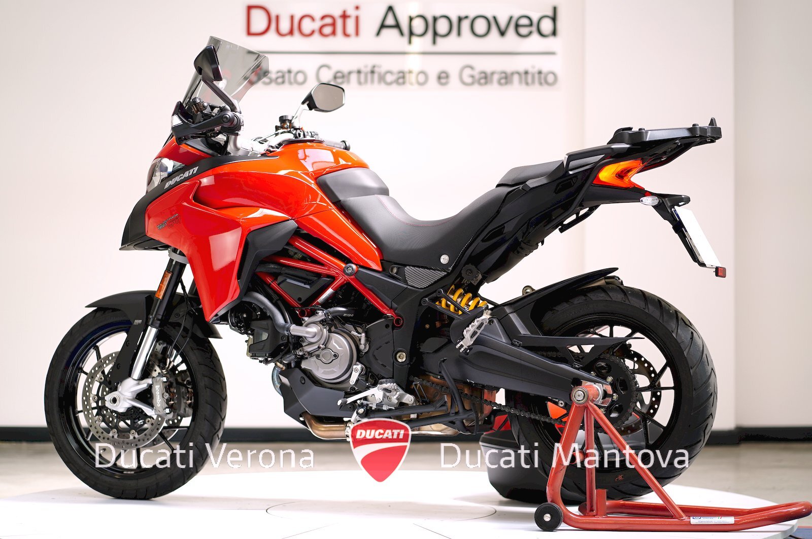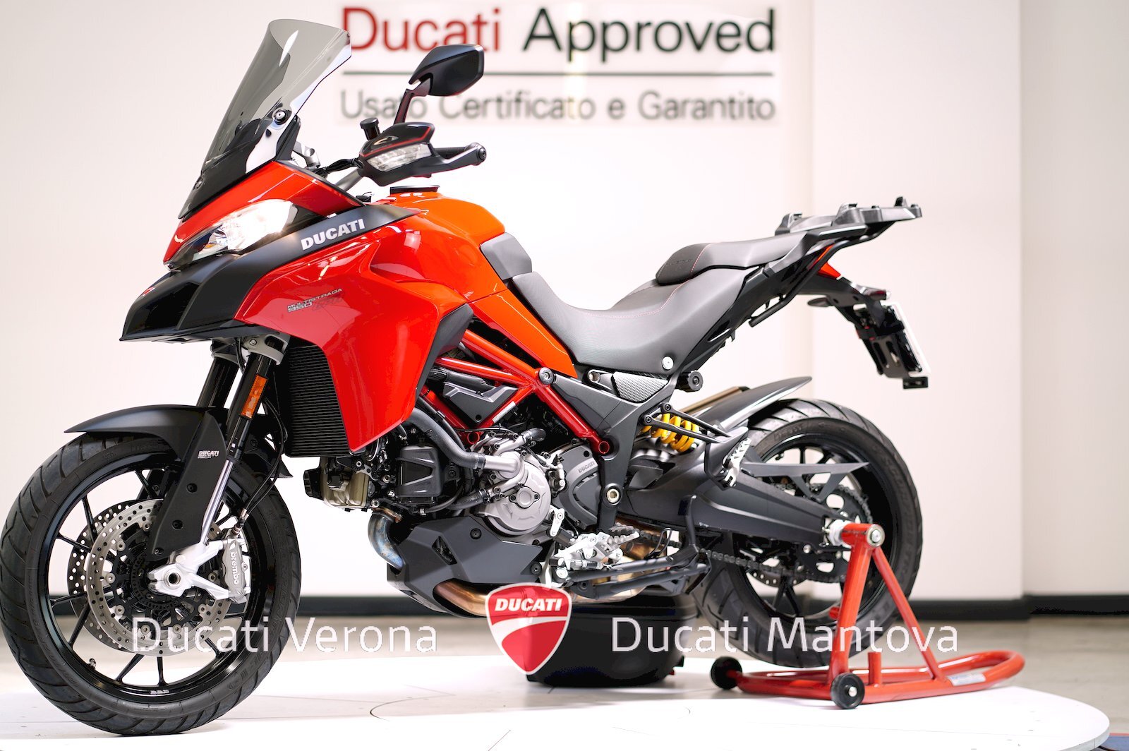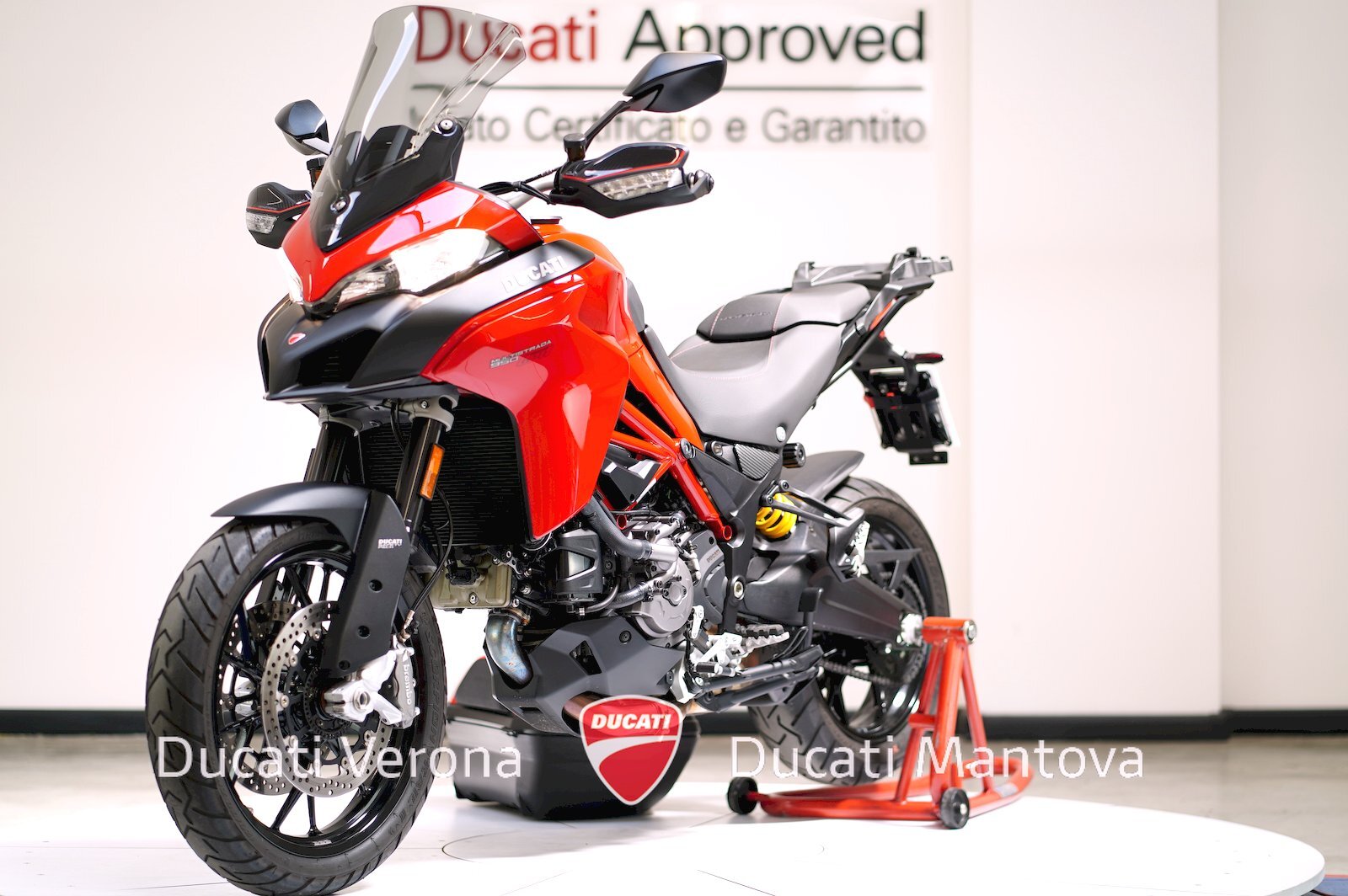 Ducati Verona, Dealer Esclusivo per Verona e Mantova dal 1999, propone una Multistrada 950 in condizioni spettacolari. Immatricolata a Maggio 2021 (modello 2020) nel classico Rosso Ducati, questa unità si distingue per un chilometraggio eccezionalmente basso: solamente 8.035 km.