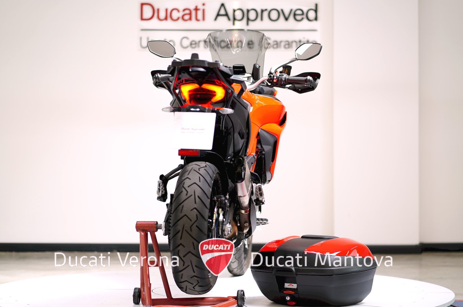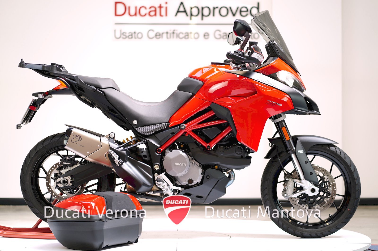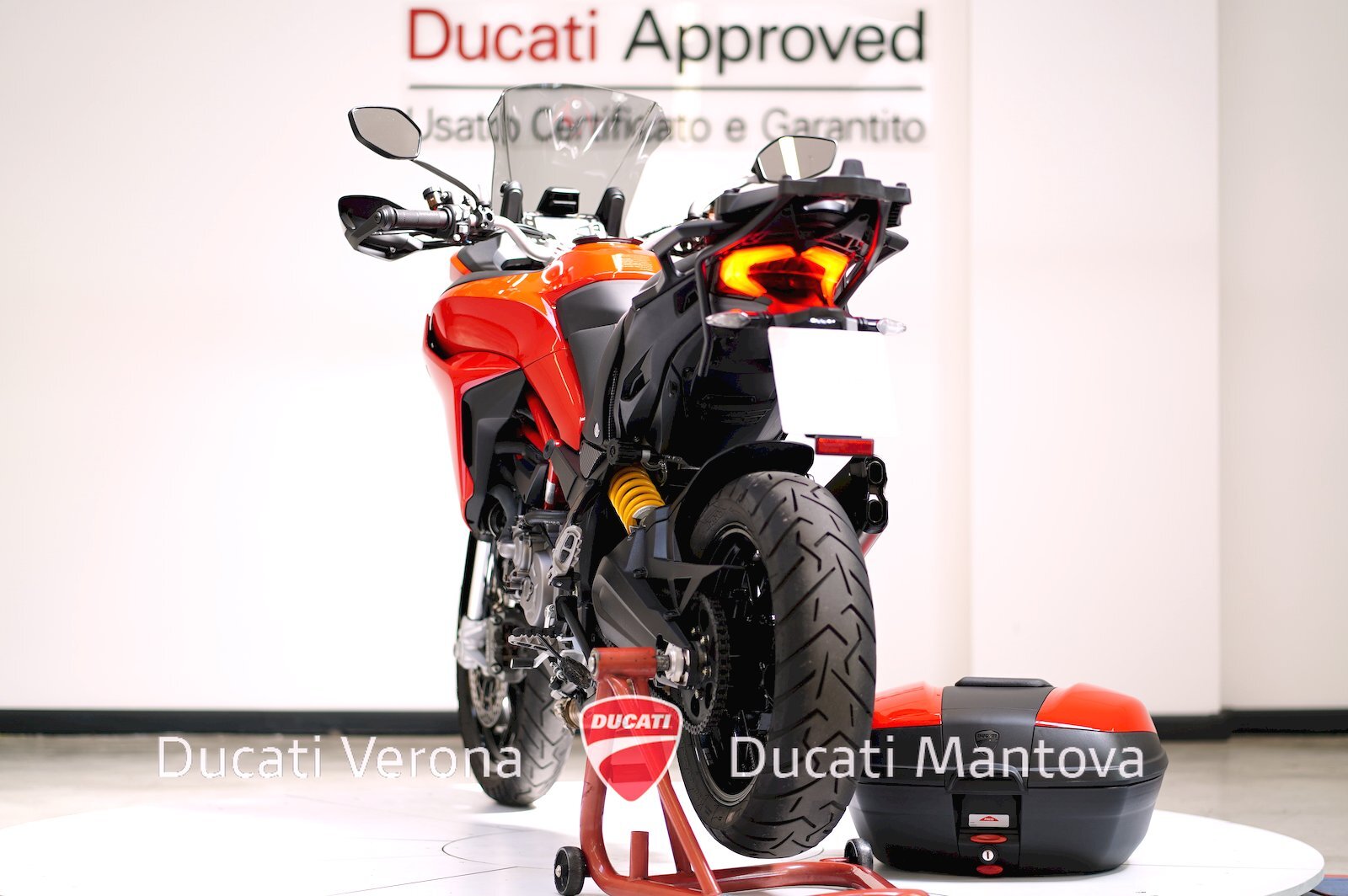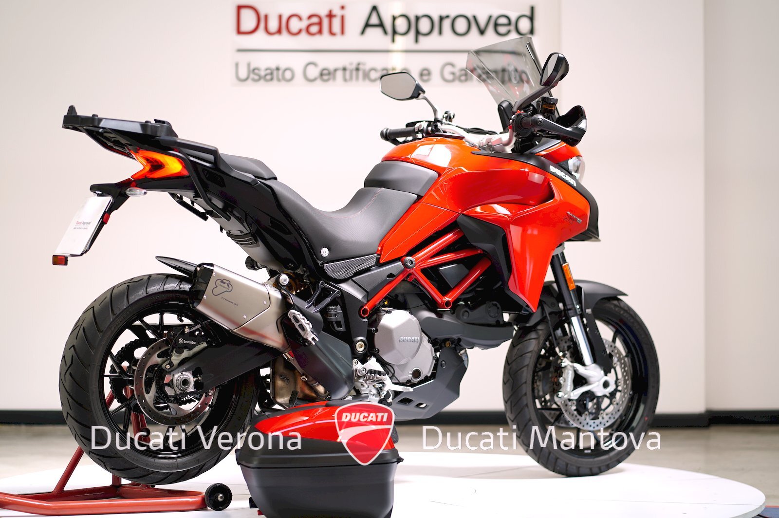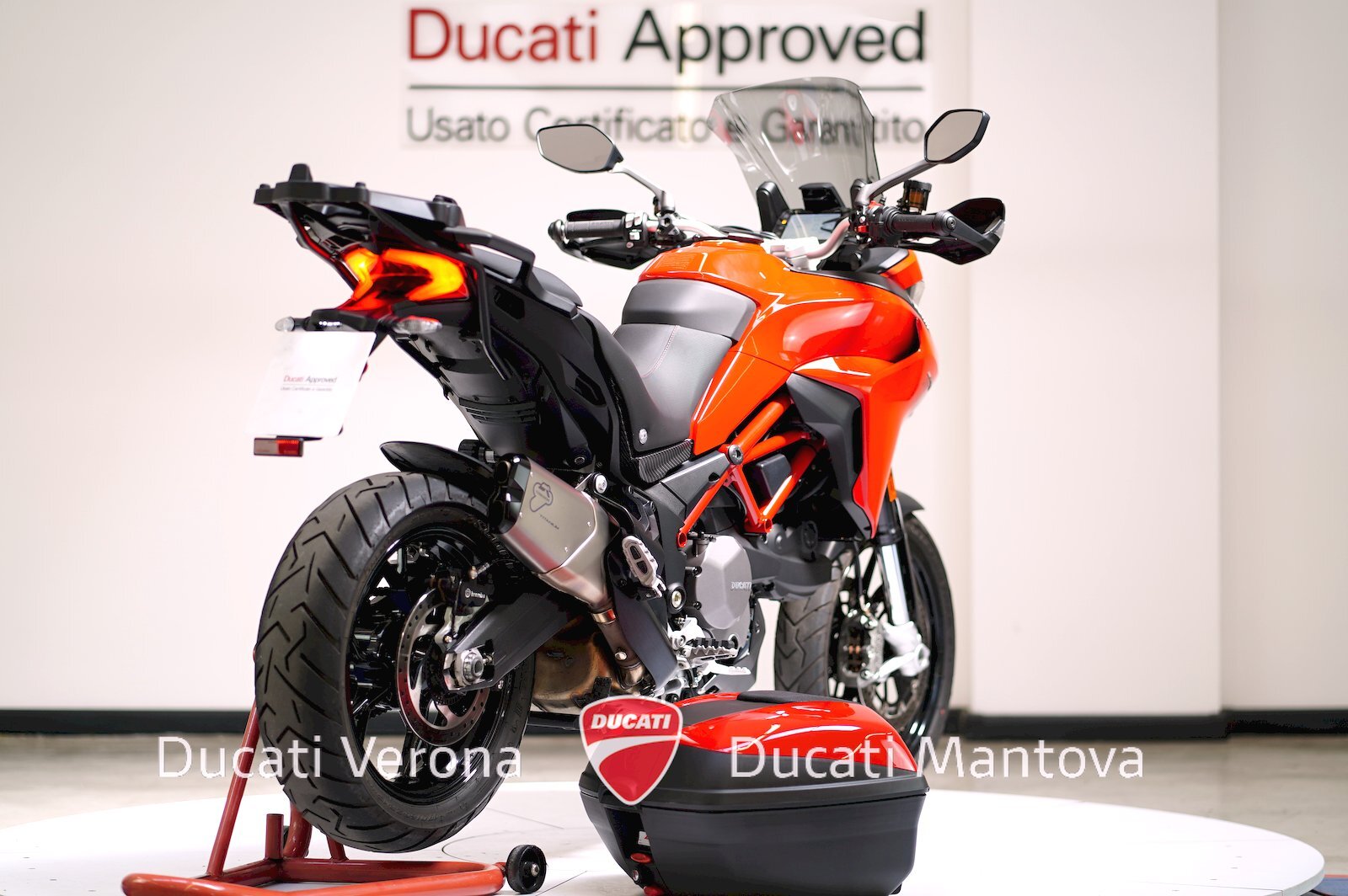 - Dotazione inclusa: Ducati Quick Shift (DQS), Manopole Riscaldate, Parabrezza Givi + Originale