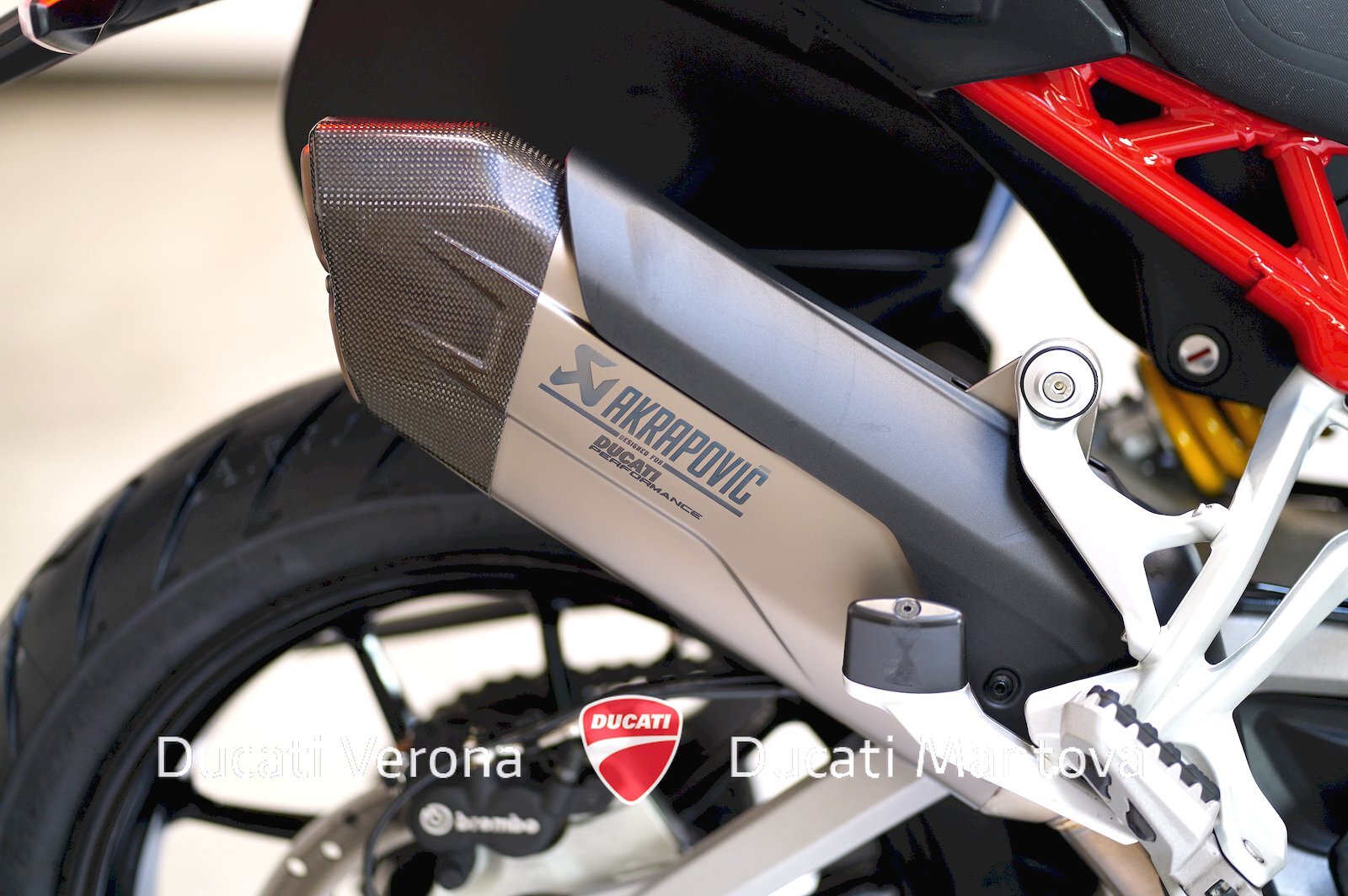 - Scarico Akrapovic: Incluso e installato, esalta il sound del V4 Granturismo.
