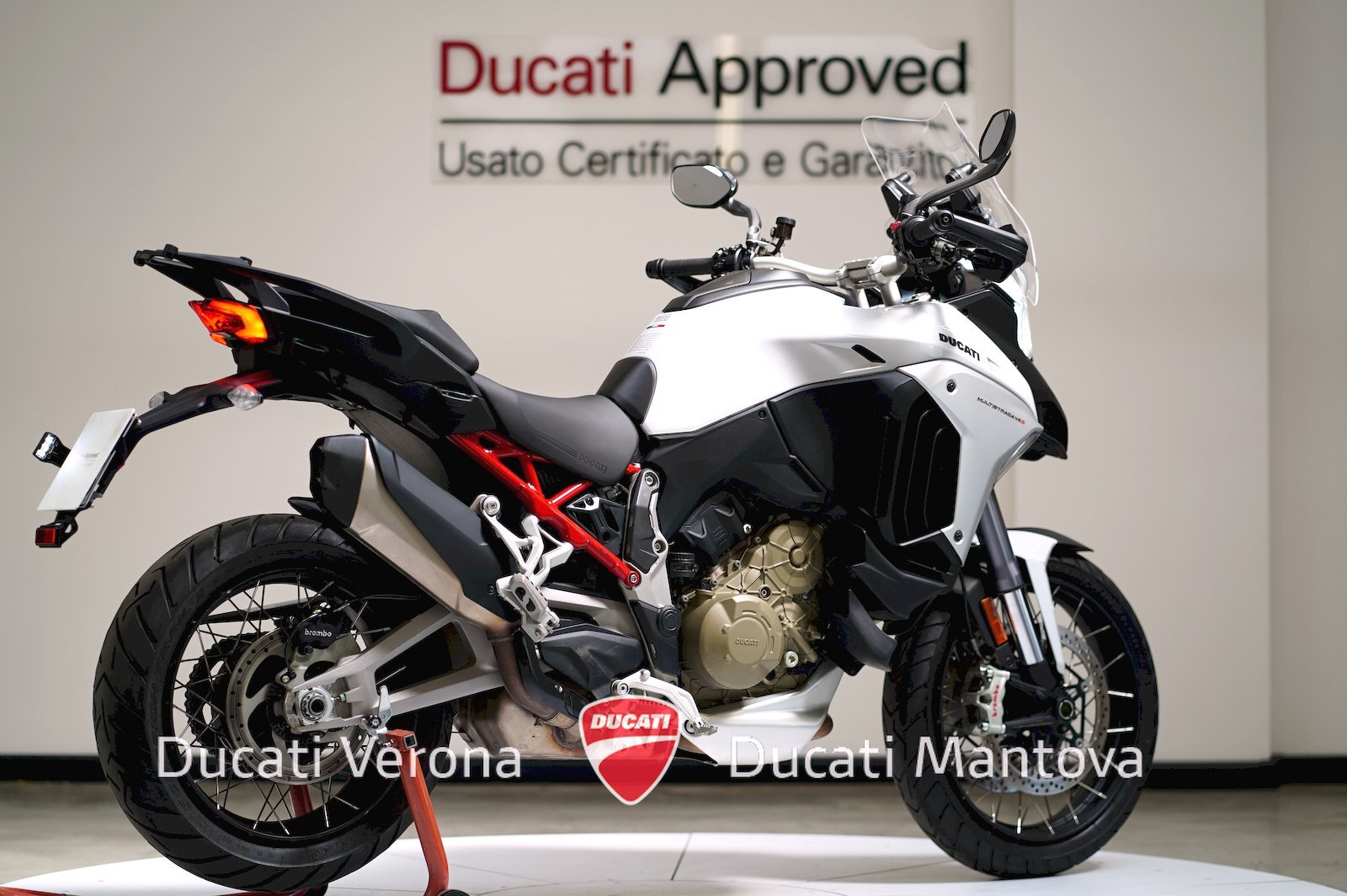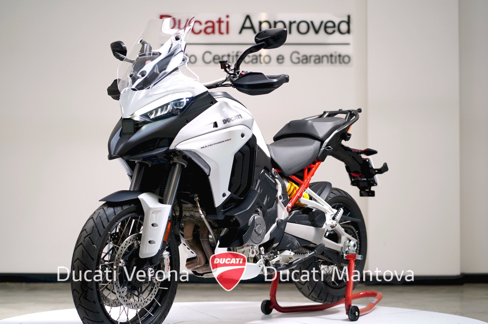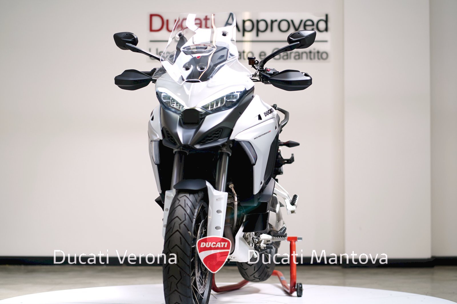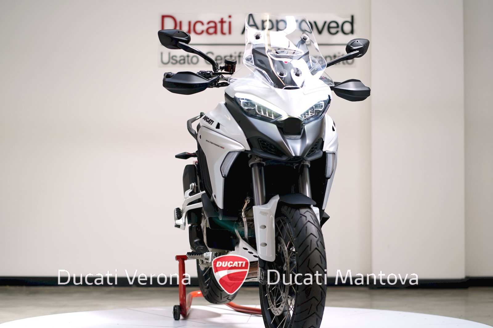 Ducati Verona, Dealer Esclusivo per Verona e Mantova dal 1999, propone in vendita una Multistrada V4 S in versione Radar. Immatricolata nel 2023 nella raffinata colorazione Iceberg White, questa motocicletta rappresenta l'eccellenza tecnologica del segmento touring, arricchita dalla robustezza dei cerchi a raggi.