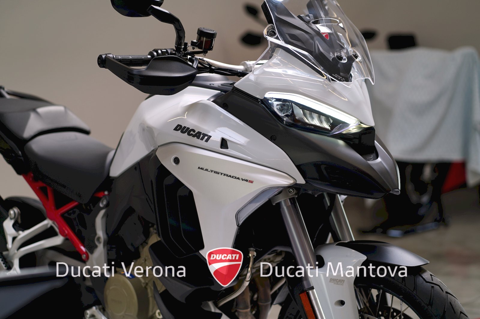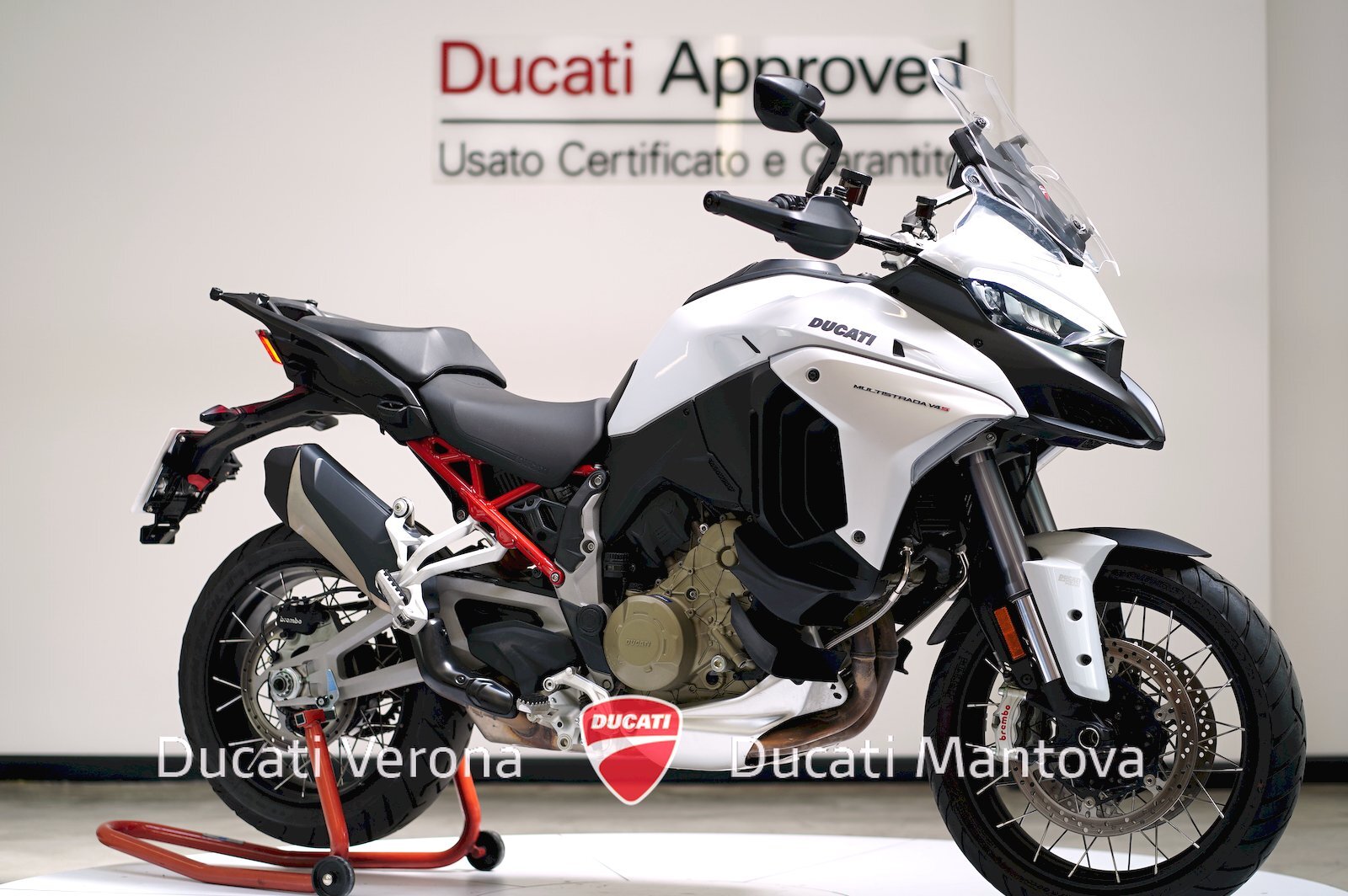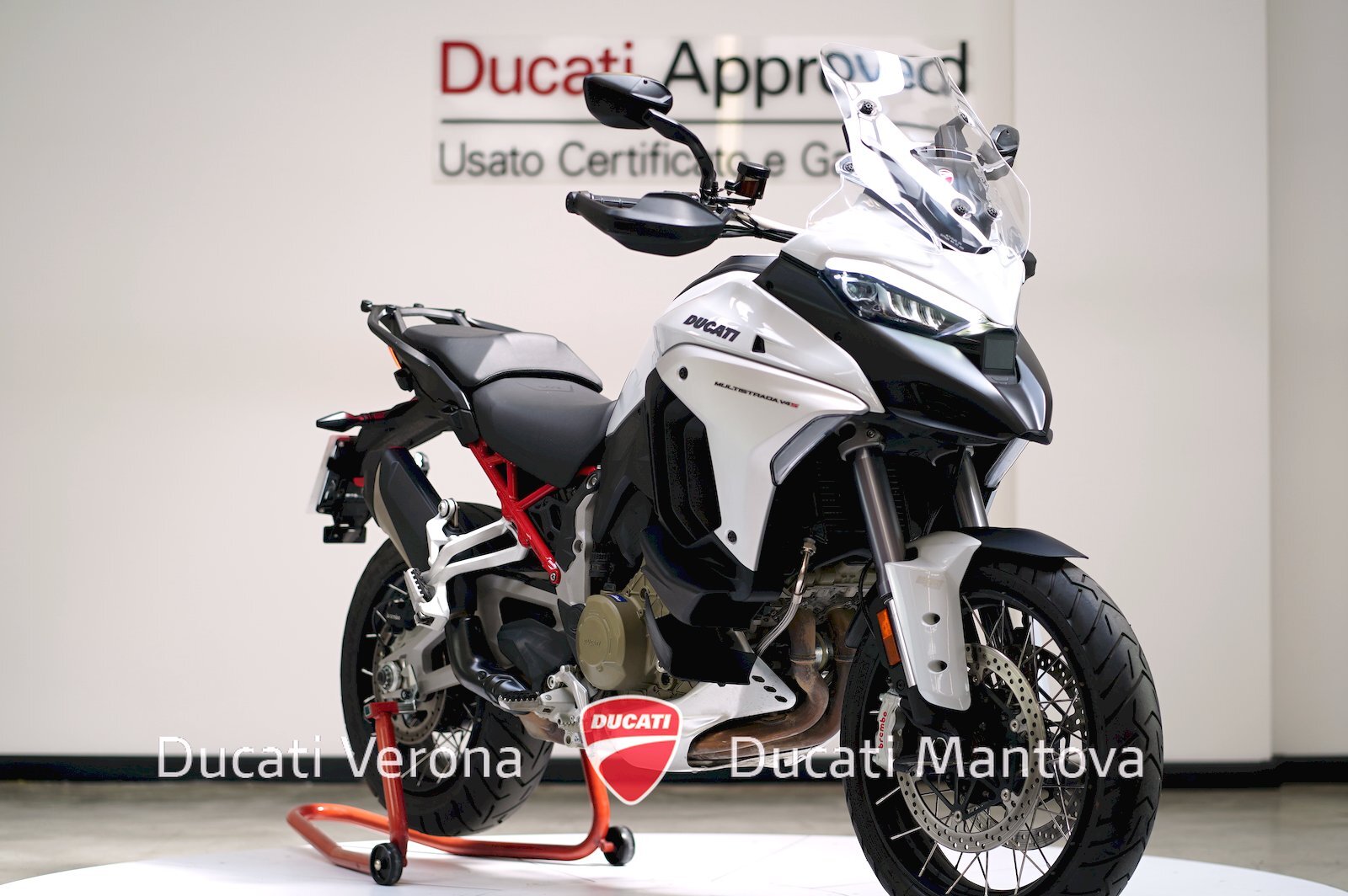 Multistrada V4 S Radar 2023 in colore Iceberg White. Solo 4.105 km, dotata di cerchi a raggi e IVA Esposta. La moto gode di Garanzia Ufficiale fino al 2027. Un piccolo graffio sul serbatoio garantisce un prezzo imbattibile: tua a 17.490 Euro senza usato. Disponibile ora presso Ducati Verona e Ducati Mantova.