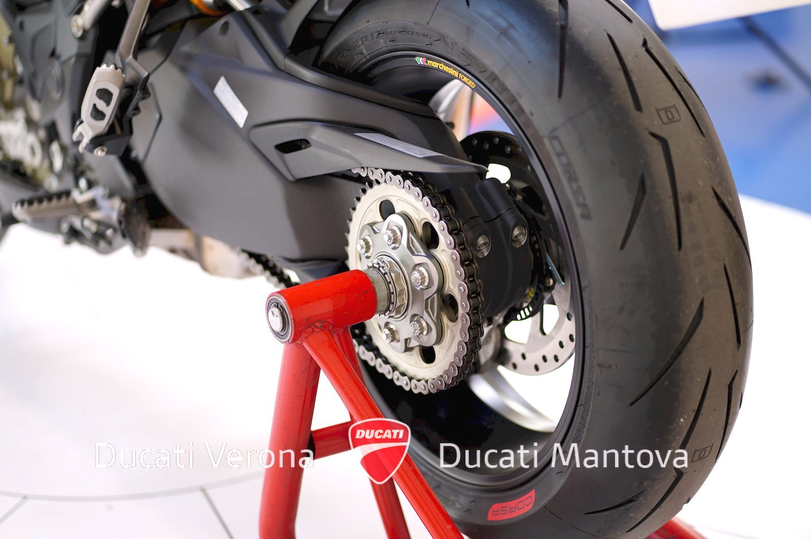 - Dotazione: Carbonio diffuso, telaietto posteriore in titanio, cerchi Marchesini forgiati e livrea dedicata